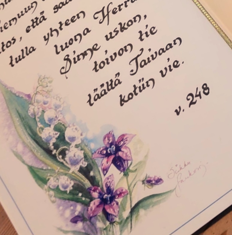 Tekstaan käsin valitsemaasi adressiin haluamasi tervehdyksen, ja lähetän saajan osoitteeseen kolmen arkipäivän sisällä. Postin kulkemiseen luvattu aika on enintään neljä arkipäivää.